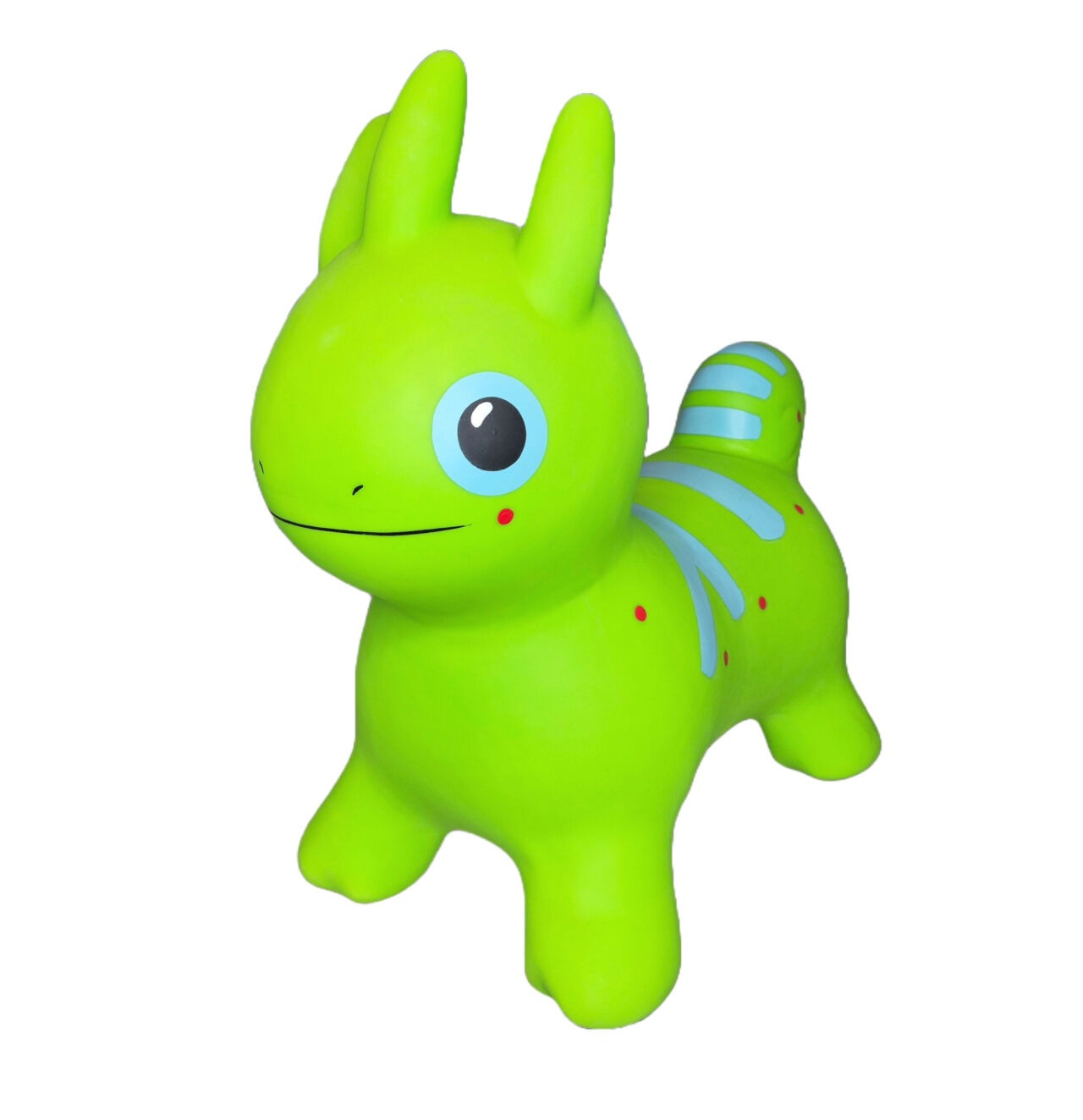 Jumpy hopper is a fun toy and a good companion for every child. It develops balance control, strengthens muscles, builds confidence, increases coordination skills and is good for physical exercise. It can be used both indoors and outdoors. Made of safe and non slip Food Grade material, same as used in food industry. With every Jumpy animal comes a birth certificate, which makes memories last a lifetime. Children can name their new friend and set a birth date, so every year they can celebrate birthdays together. With very nice colors and design, Jumpy looks lovely and brightens up your room. It can hold up to 100kg (220lb), so even parents can jump together with their child. Includes pump, manual and birth certificate. New Jumpy batches have airlock remover in the package as well!