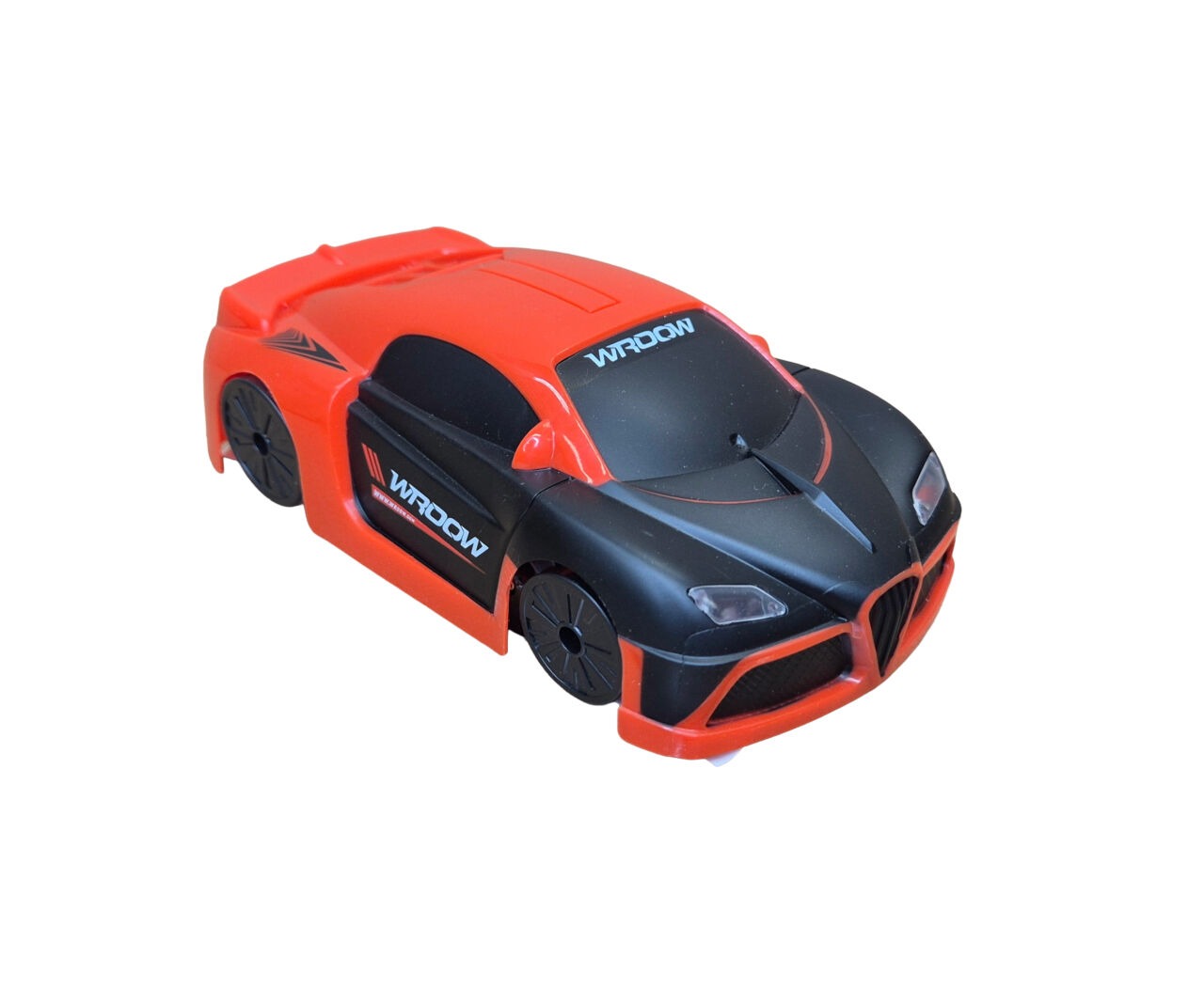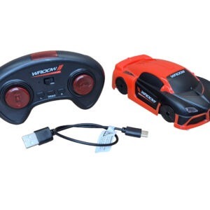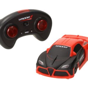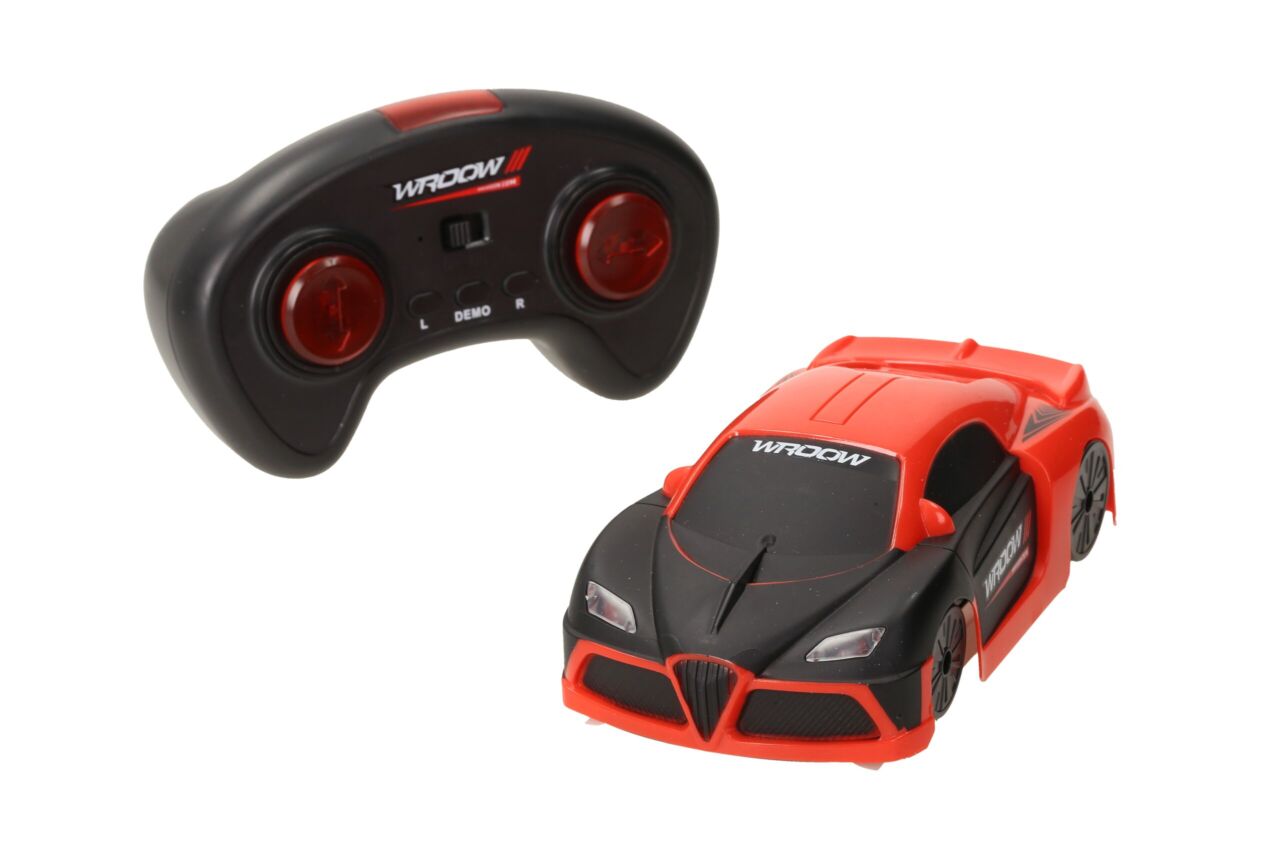 Drives on the ceiling, on the wall and on the floor. Keep the surface flat and clean, otherwise it may affect the car’s ability to stick to the surface. Car has vacuum suction which allows the car to stick to the wall. Led headlights. Car drives forward, backwards, turns right-left. Car works with 3.7V rechargeable battery, charging time about 1 hour. Charging cable included. Play time 10-15 minutes. Driving distance up to 8 meters. Controller works with 2 x AAA batteries (not included).